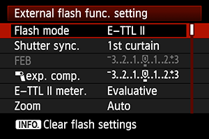 - Odaberite [Flash function settings] ili [External flash func. setting].