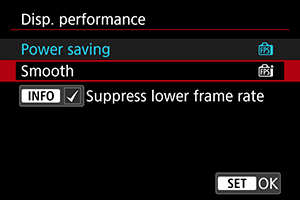- Neki uslovi snimanja i operacije fotoaparata mogu sprečiti gladak prikaz sa velikom brzinom kadrova, čak i kada je podešeno na [Smooth].