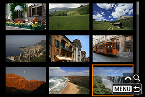 birač ulevo za prebacivanje između 9, 36 i 100 umanjenih sličica. Okrećite birač udesno za prebacivanje između 100, 36, 9 i 4 umanjene sličice i jedne slike preko celog ekrana.