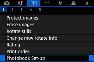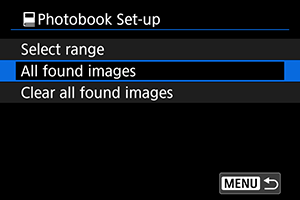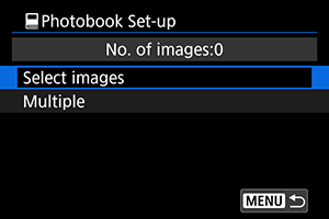 Ako odaberete [All images in folder] ili [All images on card] u okviru opcije [Multiple] u meniju [: Photobook Set-up], sve slike u istom direktorijumu ili na kartici će biti odabrane za foto-album.