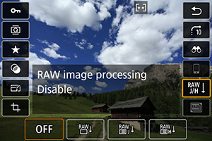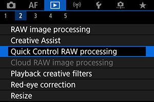 Možete odabrati tip obrade RAW slika preko brzog kontrolnog ekrana.