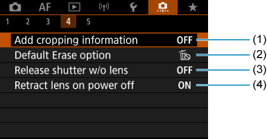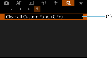 Ako odaberete [: Clear all Custom Func. (C.Fn)] obrisaćete sva podešavanja prilagođenih funkcija.