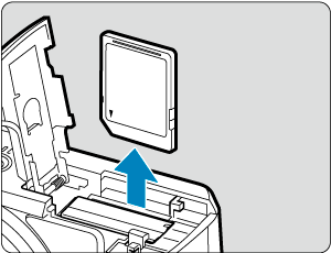 - Ubacite karticu sa stranom gde je logotip okrenutom ka prednjoj strani fotoaparata, tako da klikne na mesto.