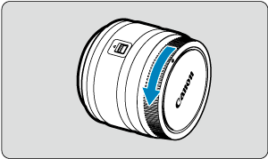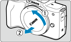 - Uklonite zadnji poklopac sa objektiva i poklopac sa tela fotoaparata tako što ćete ih okrenuti (odvrnuti) u smeru strelice.