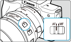 - Kod EF objektiva sa nosačem za stativ poput super teleobjektiva, montirajte stativ na ram za stativ na objektivu. Ako koristite objektiv bez nosača za stativ, montirajte stativ na nosač na adapteru za montiranje.