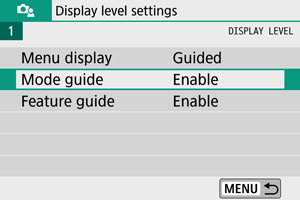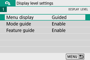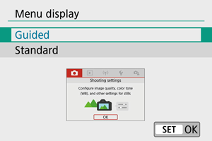za podešavanje izgleda menija. Ako izaberete [Guided]