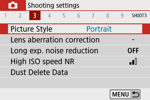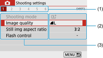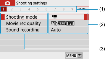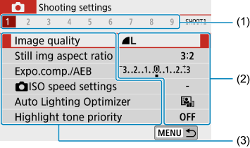 Prikazane kartice i stavke u meniju se razlikuju u zavisnosti od režima za snimanje.