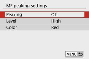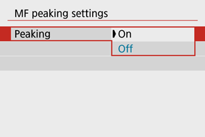 - Efekat ove funkcije možda neće biti dovoljno uočljiv pri snimanju sa visokom ISO brzinom, naročito u proširenom rasponu ISO brzine. Po potrebi smanjite ISO brzinu ili podesite [Peaking] / [Oivičavanje] na [Off] / [Isklj.].