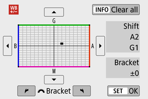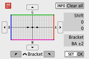 da biste poništili sve postavke [WB Shift/Bkt.] / [Pomic./serij.snim. sa bal.bel.].