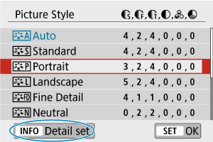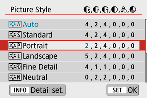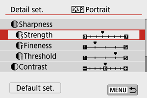 - Izaberite [Default set.] / [Podrazum. postavke] u 3. koraku za resetovanje parametara izabranog stila slike na podrazumevane postavke.