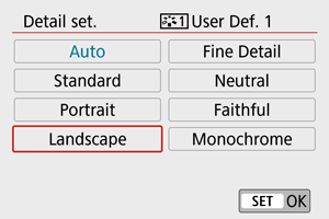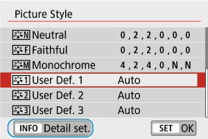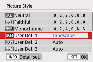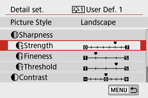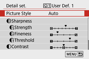 - Ako ste već registrovali stil slike kao korisnički stil [User Def. *] / [Korisn. def. *], izmenom polaznog stila slike poništićete postavke prethodno registrovanog korisničkog stila slike.
