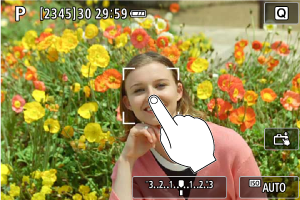- Dodirnite lice ili drugi objekat na ekranu. Fotoaparat će izoštriti sliku na mestu koje ste dodirnuli (autofokus na dodir) sa izabranom autofokusnom metodom ().