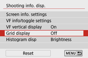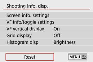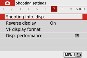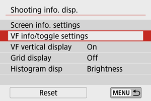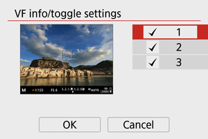Izaberite [VF info/toggle settings] / [Inform. na tražilu/prebaci postavke].