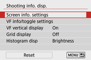 Izaberite [Screen info. settings] / [Postavke ekrana sa inform.].