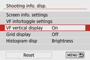 Izaberite [VF vertical display] / [Vert. prikaz na tražilu].