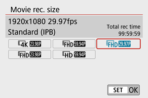 : Video sistem], ponovo podesite [Movie rec. size] / [Vel. snim. video zapisa].