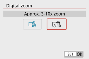 - Da biste poništili digitalni zum, izaberite [Disable] / [Onemog.] u 2. koraku.