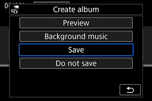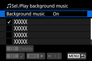 Moži ćete da prikažete albume i projekcije slajdova uz pozadinsku muziku ako ste iskopirali muziku na karticu pomoću EOS softvera EOS Utility.