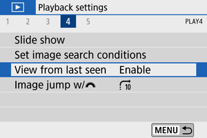 - [Enable] / [Omog.]: Reprodukcija će se nastaviti od poslednje prikazane slike (sem ako ste upravo završili sa snimanjem).