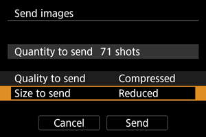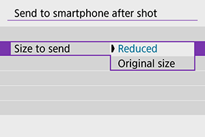 - Pomoću opcije [Size to send] / [Vel. pri slanju] možete podesiti veličinu slike pri slanju.