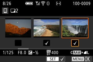 Možete odjednom poslati samo filtrirane slike koje ispunjavaju filtere za pretragu zadate pomoću opcije [Set image search conditions] / [Podesi postavke za pretragu slika]. Više informacija o opciji [Set image search conditions] / [Podesi postavke za pretragu slika] potražite u odeljku Zadavanje filtera za pretragu slika.