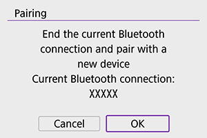 - Ako ste sačuvali informacije o fotoaparatima sa kojima ste prethodno bili upareni na pametnom telefonu, nećete moći da ga uparite sa fotoaparatom. Pre nego što pokušate ponovo da uparite uređaje, obrišite informacije o fotoaparatima sa kojima ste prethodno bili upareni preko ekrana sa Bluetooth postavkama na pametnom telefonu.