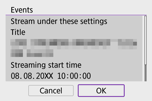 - Nećete moći da uparite fotoaparat sa bežičnim daljinskim upravljačem BR-E1 (prodaje se zasebno, ) nakon što podesite strimovanje.