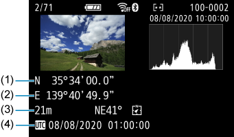 Možete proveriti lokacijske informacije pridružene slikama preko ekrana sa informacijama o snimanju ().