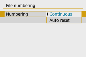 Numerisanje datoteka će se resetovati i ponovo početi od 0001 svaki put kada zamenite karticu ili kreirate novi direktorijum. Ovo je korisno ako želite da organizujete slike prema karticama ili direktorijumima.