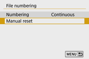 Kada ručno resetujete numerisanje datoteka, automatski će biti kreiran novi direktorijum u kojem će sačuvane datoteke biti numerisane počev od broja 0001.