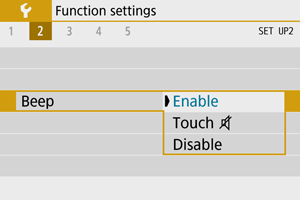 Fotoaparat se neće oglasiti zvučnim signalom kada je slika izoštrena, pri snimanju sa automatskim okidanjem ili kao odgovor na radnje dodirom na ekran.