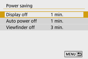 Možete podesiti vreme nakon kojeg će se ekran, fotoaparat i tražilo automatski isključiti u slučaju neaktivnosti fotoaparata (funkcije za isključivanje ekrana, automatsko isključivanje i isključivanje tražila).