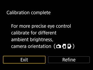 - Za veću preciznost kontrole oka odaberite [Refine] i izvršite kalibraciju za vertikalno snimanje.