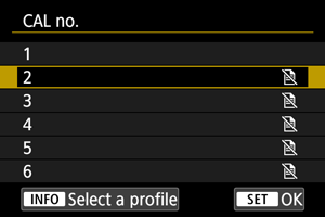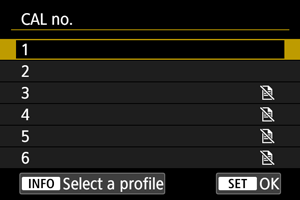Da biste registrovali podatke o kalibraciji za druge korisnike ili u slučaju naočara, izaberite dostupan broj kome želite da dodelite podatke od brojeva označenih kao [] na [CAL no.] ekranu, a zatim izvršite kalibraciju.