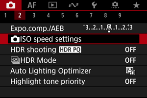 - Da biste proširili opseg ručnog podešavanja ISO brzine sa L (ekvivalentno ISO 50) na H (ekvivalentno ISO 204800), podesite [ISO speed range] u meniju [