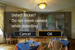 Fotoaparat prepoznaje izvore svetlosti u rasponu od 50.0–2011.2 Hz i prikazuje odgovarajuću brzinu zatvarača za snimanje pod izvorima svetlosti koji trepere na visokim frekvencijama. Nakon toga možete da pređete na naznačenu brzinu zatvarača.