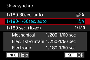 : Shutter mode] podešavanja. To je 1/180 sek. kada je postavljeno na [Electronic], 1/250 sek. za [Elec. 1st-curtain], i 1/200 sek. za [Mechanical].