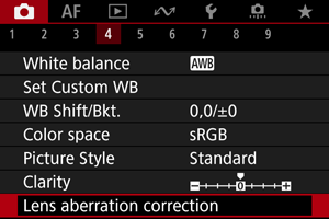 - Ako koristite objektive drugih proizvođača, preporučuje se da odaberete [Disable] čak i ako je prikazana poruka [Correction data available].