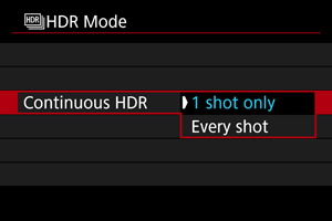 - Pri opciji [1 shot only], HDR snimanje se automatski otkazuje nakon što završite sa snimanjem.