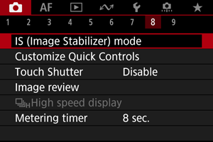 : IS (Image Stabilizer) mode] se ne prikazuje kada je priključen objektiv opremljen IS.