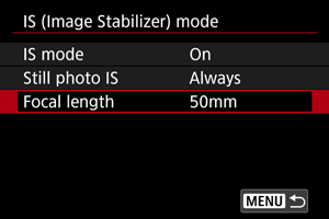 Stabilizacija slike na osnovu vaše specifikovane žižne daljine objektiva je moguća podešavanjem žižne daljine kada koristite objektive koji ne podržavaju komunikaciju objektiva.