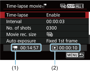 - Čak i ako je vreme reprodukcije ubrzanog video zapisa manje od 1 sek., datoteka video zapisa će i dalje biti kreirana. U ovom slučaju, “00'00"” je naznačeno u [Playback time].