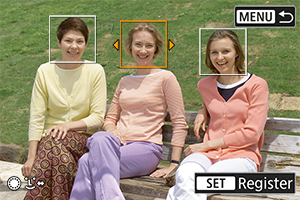 Možete da registrujete ljude na kameri da bi kamera pokušala da otkrije njihova lica i odredi prioritete za fokusiranje, osvetljenost i ton boje za njih kada snimate. Da biste registrovali lice, možete da fotografišete nekoga ili da koristite sliku na kartici.