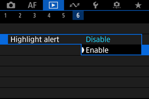 Možete odabrati da preosvetljeni delovi slike trepere na ekranu. Da biste dobili detaljniju i prirodniju gradaciju na delovima slike koji trepere, podesite korekciju ekspozicije na negativnu vrednost i ponovo snimajte kako biste dobili bolji rezultat.