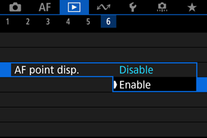 Možete prikazati AF tačke u kojima je slika izoštrena, tako da budu oivičene crvenom bojom na ekranu pri reprodukciji.