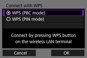 - Pročitajte uputstva počev od odeljka Osnovne postavke za komunikaciju za više informacija o povezivanju fotoaparata na žičnu LAN vezu ili preko pristupne tačke koja ne podržava WPS funkciju (PBC režim).