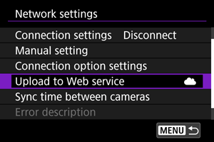 - Automatsko slanje ne počinje ako ponovo pokrenete kameru dok su druge komunikacijske funkcije u toku. Pre ponovnog pokretanja kamere, koristite [Connection settings] za prekid veze za druge funkcije.