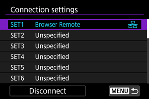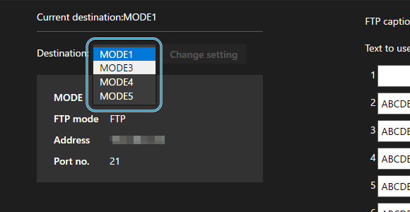 Ako nameravate da koristite FTP prenos pri daljinskom snimanju slika, izmenite postavke za povezivanje na fotoaparatu () da biste promenili odredišni FTP server.