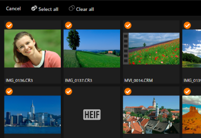 Odaberite pojedinačne umanjene sličice da biste mogli posebno da odaberete slike. Ponovo odaberite umanjene sličice da biste poništili odabir.