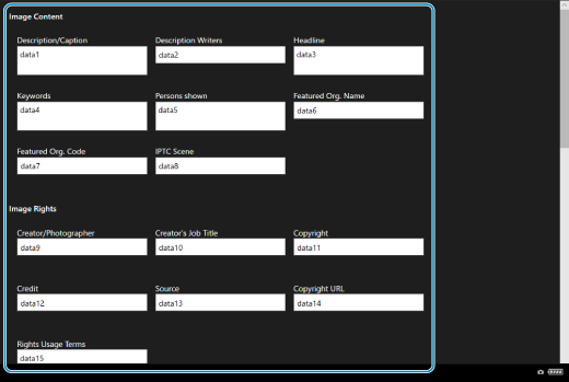 Biće prikazan ekran za uređivanje IPTC informacija.